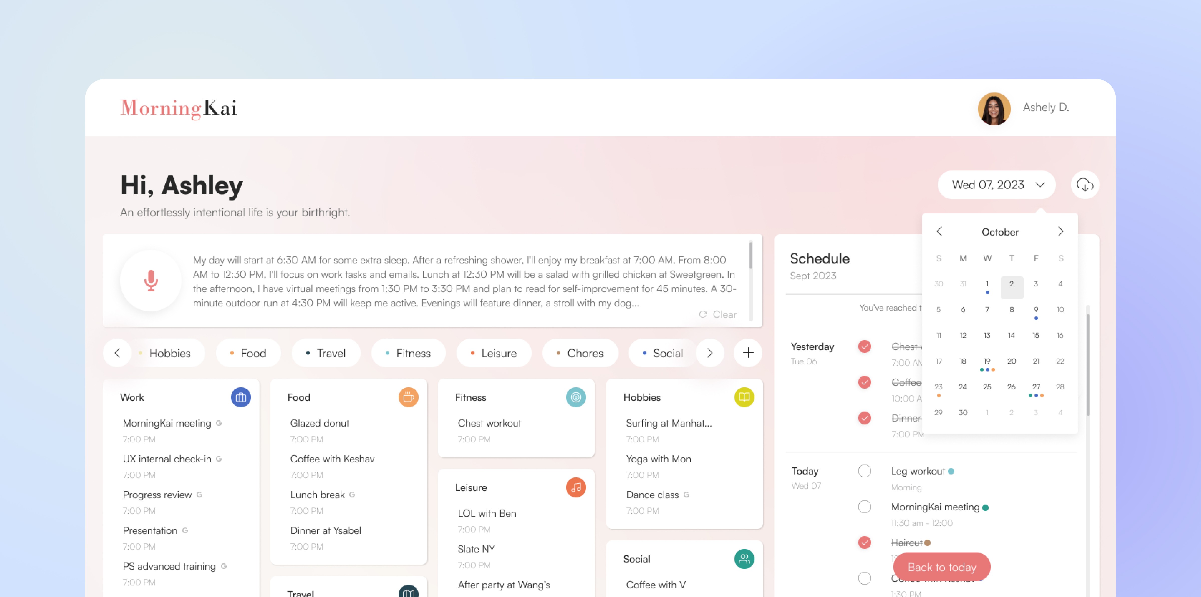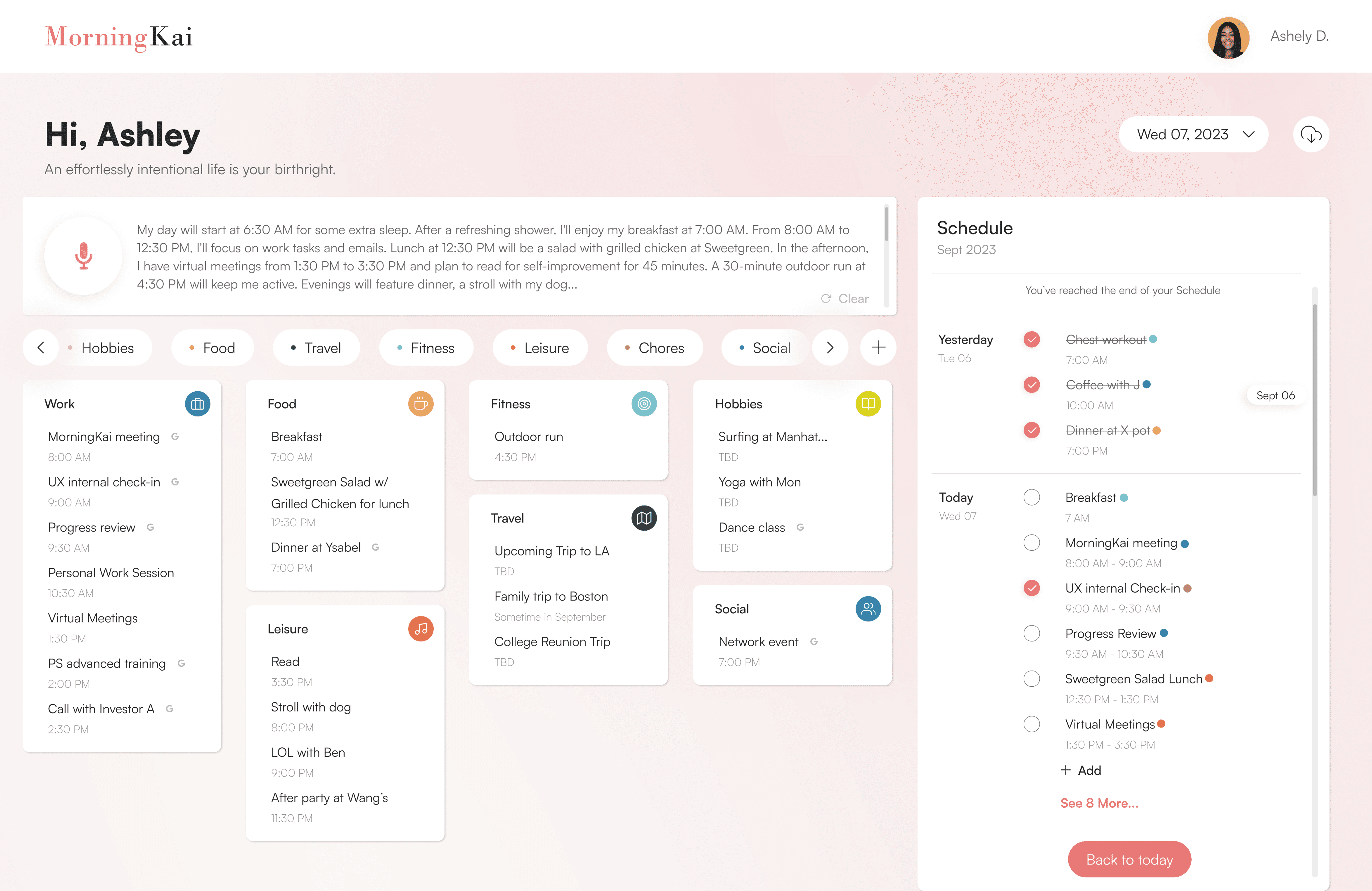 MorningKai is an AI-powered productivity tool that transforms unstructured thoughts into organized plans, tasks, and schedules for more balanced daily routines.